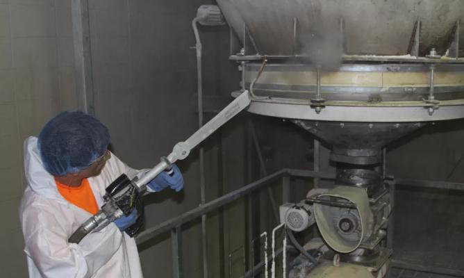 设备内壁清洗:如,气力输送的管道内壁;载体、食盐、混合后的提升机内壁、机尾等;小料投料口内壁;小料秤斗内壁;等